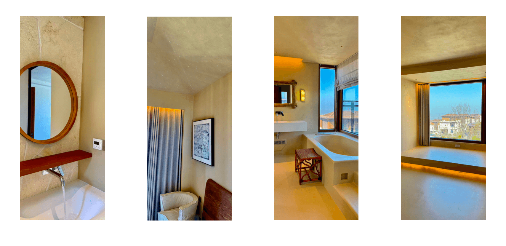 The villa combines radiant ceiling cooling and hydronic floor heating to maintain stable indoor temperatures throughout the year.