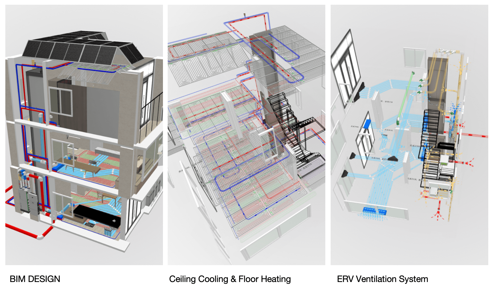 Unlike conventional air-conditioning systems that rely on strong air circulation, this house uses radiant temperature control and controlled fresh air ventilationto maintain stable indoor environmental conditions.