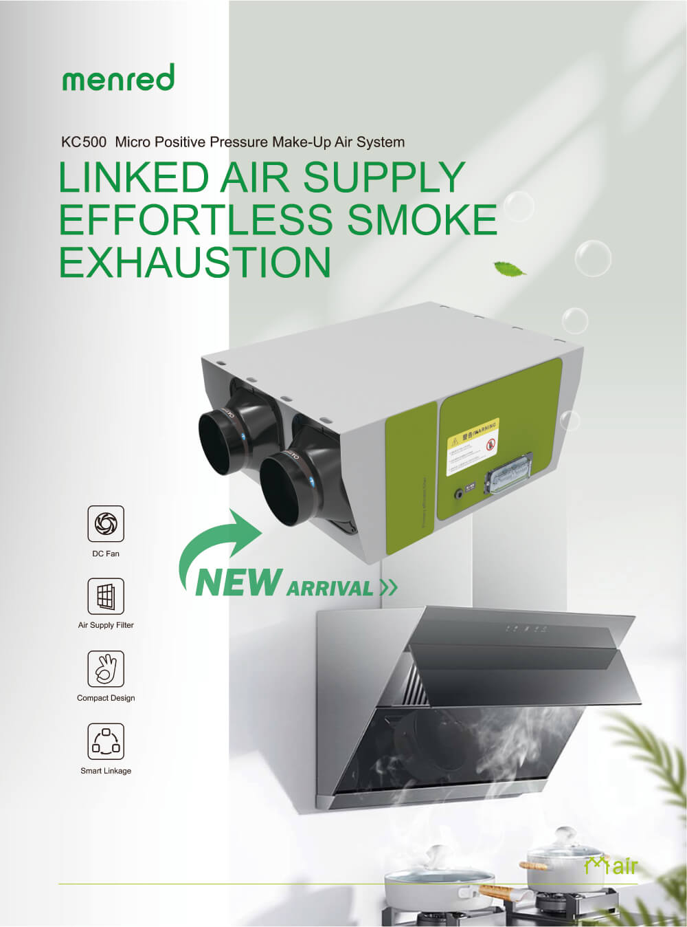 The KC500 automatically synchronizes with the range hood. When the hood turns on, fresh air is instantly supplied to support high-efficiency smoke extraction.