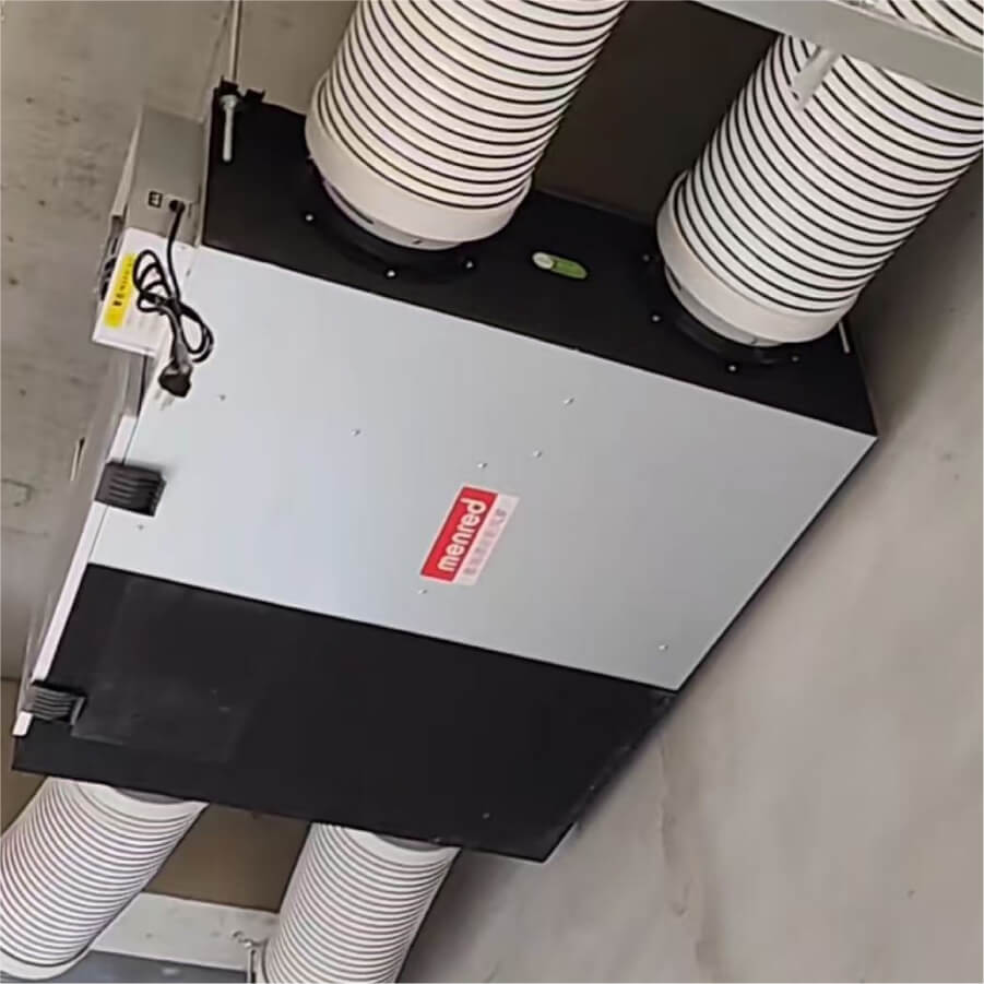 The fresh air ventilation system installed in Gediao Jingyuan provides continuous clean air supply and improved indoor air quality for low-density residential buildings. By integrating heat recovery ventilation with intelligent control, the system ensures energy-efficient and comfortable living environments.1. Heat Recovery Ventilation with Energy Efficiency:The Menred NET Pro series utilizes a high-efficiency heat exchange core to transfer heat between exhaust air and incoming fresh air, reducing energy loss while maintaining indoor comfort. The system ensures a stable supply of fresh air while improving overall energy efficiency.2. High-Efficiency Air Filtration:Equipped with multi-stage filtration (pre-filter + high-efficiency filter), the system effectively removes PM2.5 and airborne pollutants, ensuring clean and healthy indoor air quality.3. Smart Control and Flexible Operation:The LS7.33 controller supports manual and programmable operation modes, with optional air quality monitoring and Wi-Fi control, enabling convenient and intelligent system management.More about the project