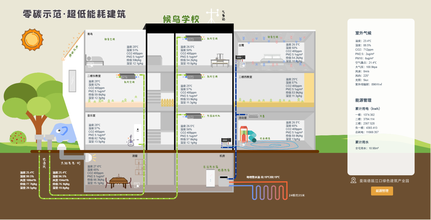 Characteristics: Online monitoring of indoor air quality, sub-item metering of electricity consumption,and optimization of operating strategies.